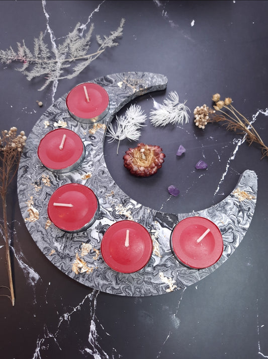 Crescent Moon Jesomite and Black Resin Tealight Candle Tray