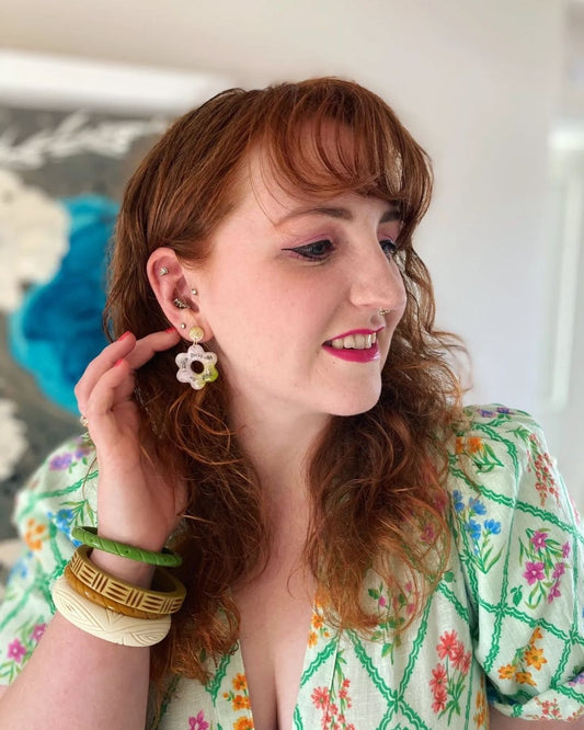 Floral All the Mauves Dangle Earrings - Polymer Clay Cream Purple Floral Charm Purple Lilac