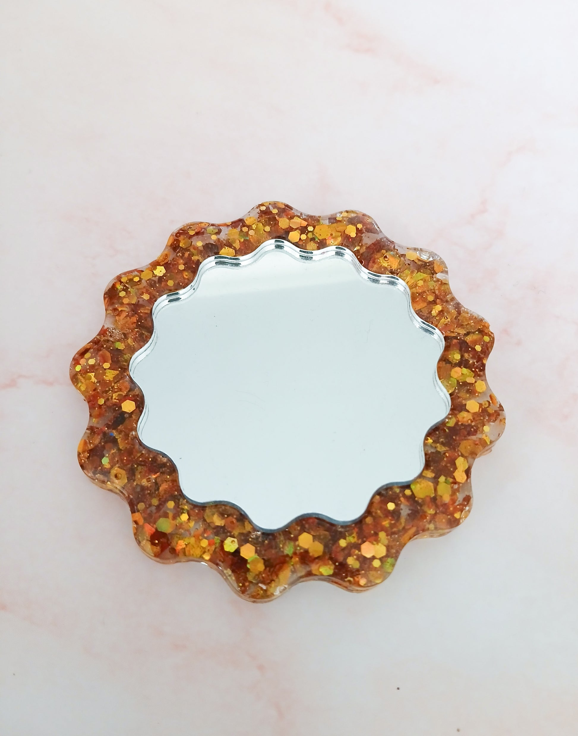 Beautiful handmade epoxy resin pocket mirror.